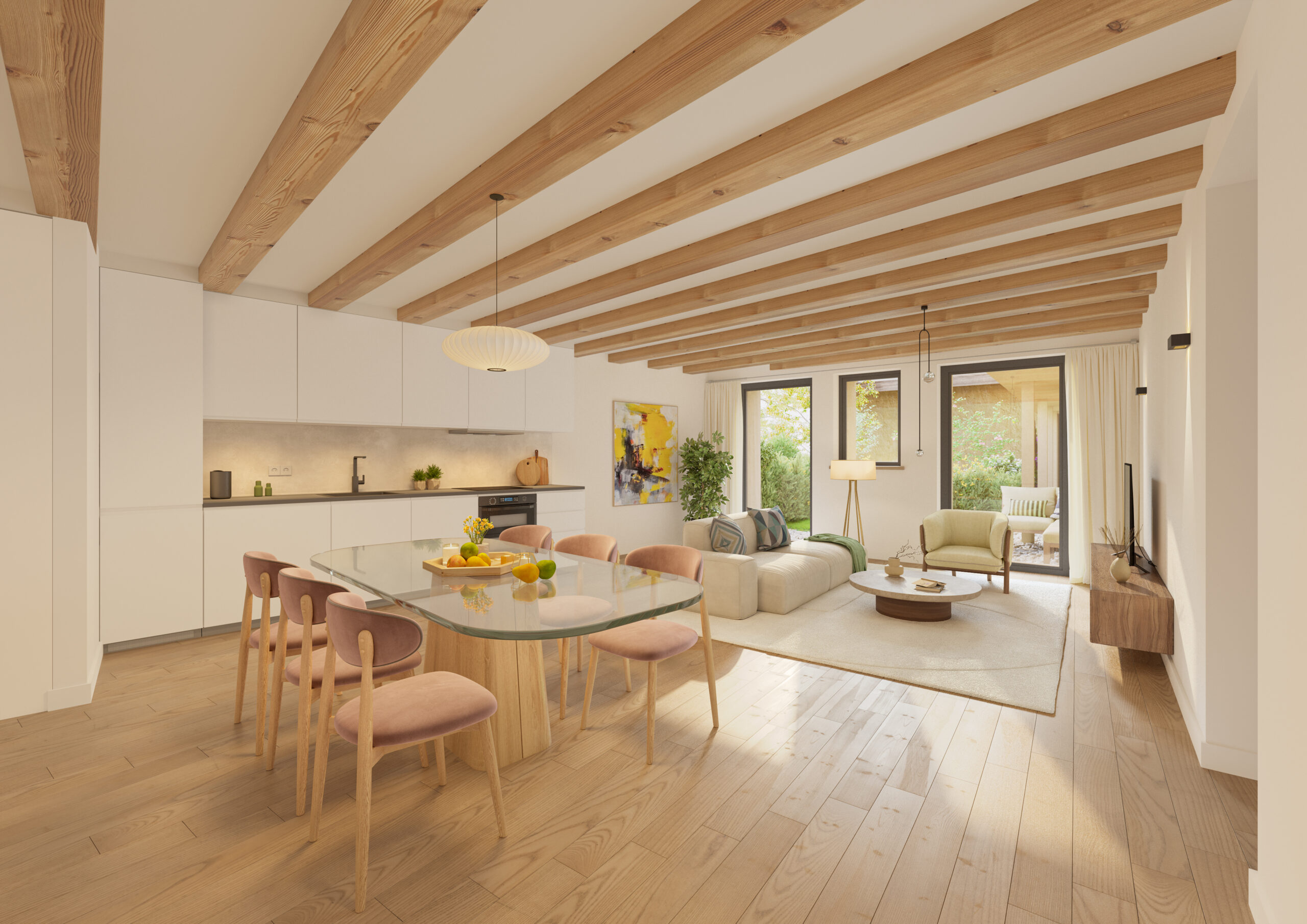 Les intérieurs, pensés pour répondre aux besoins actuels, favorisent une circulation fluide et un usage optimisé des espaces. Les cuisines, ouvertes sur les salles à manger et salons, sont à la fois conviviales et fonctionnelles, parfaites pour des moments de partage en famille ou entre amis.